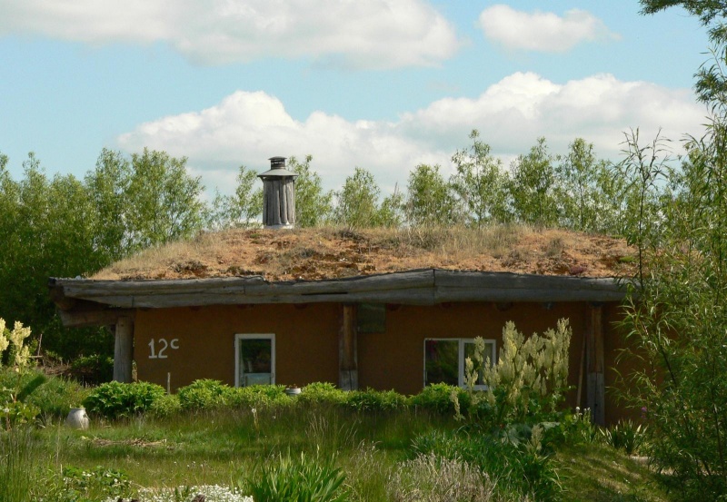 Příklad slaměného domu s dřevěnou konstrukcí a "zelenou střechou". Autor fotografie: Josef Brůna 2008