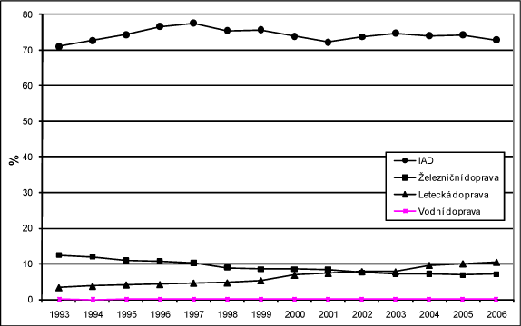 | 13. 3. 2008, 15:29 | 460 × 289 (10 KB) | Jiří Dlouhý (diskuse | příspěvky) | Podíl jednotlivých druhů dopravy na výkonech osobní dopravy v ČR (v %) |